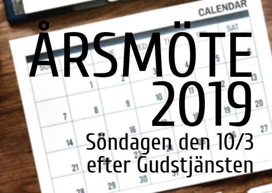 Årsmöte 2019 Publicerat 18 februari, 2019 av Elvira Hemström Söndagen den 10/3 är det dags för församlingens årsmöte. Varmt välkommen!
