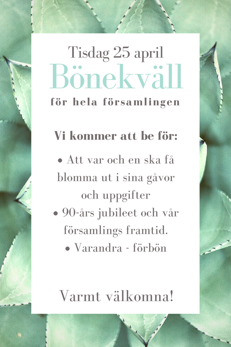 Vi samlas för bön och tillbedjan kl 18.30, varmt välkomna!