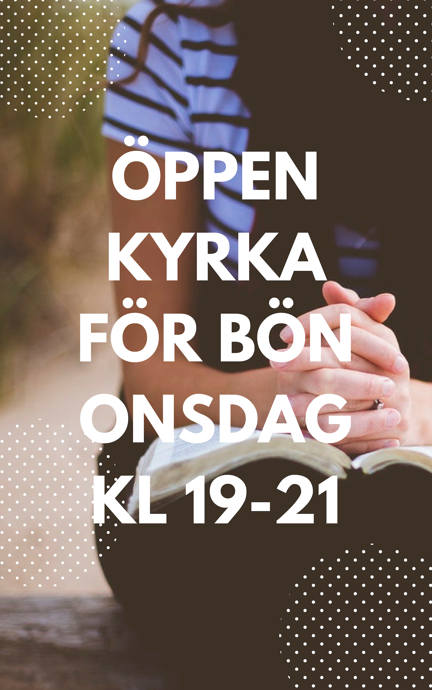 ONSDAGSBÖN Publicerat 7 januari, 2019 av Elvira Hemström Ingen måndagsbön ikväll, vi träffas på onsdag mellan 19-21 istället. Varmt välkomna! ?