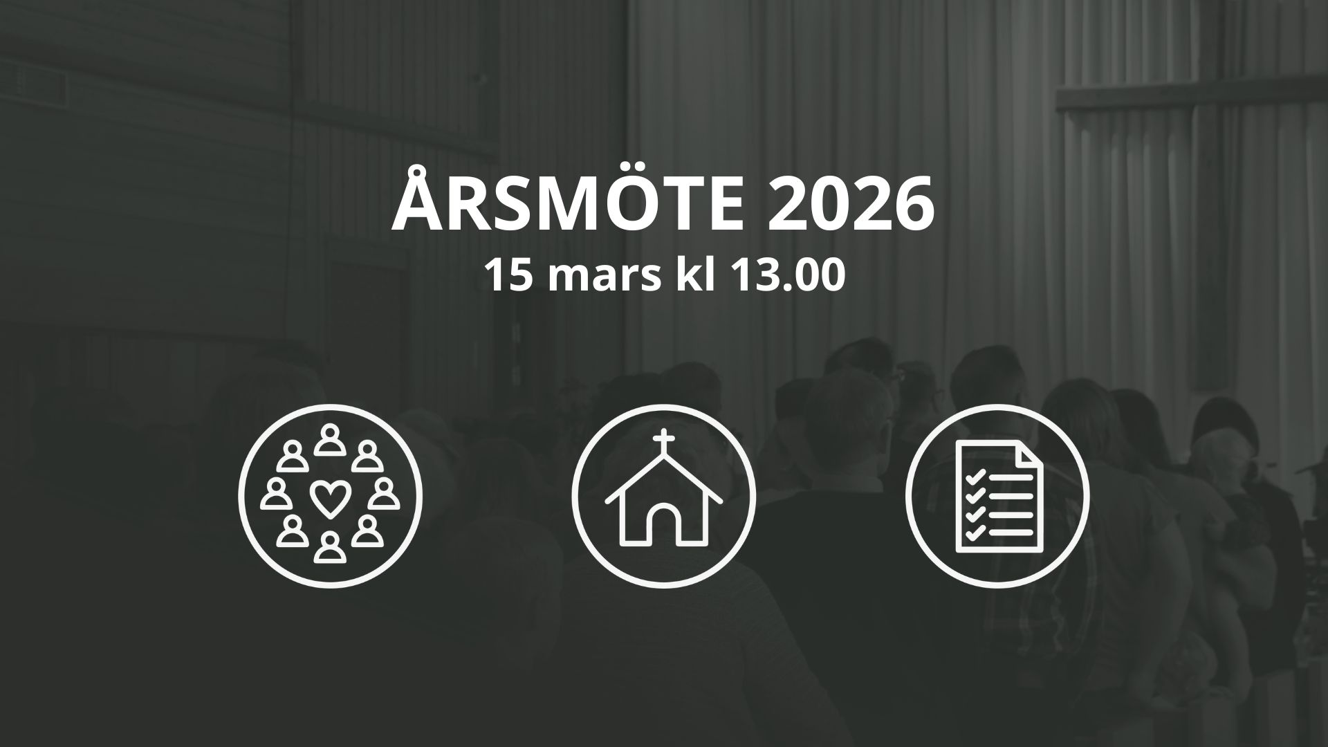 Välkomna att delta i församlingens årsmöte. Det behövs ingen anmälan, men det är bara församlingsmedlemmar som kan rösta vid mötet. Det ekonomiska underlaget och revisionsberättelsen presenteras vid årsmötet.