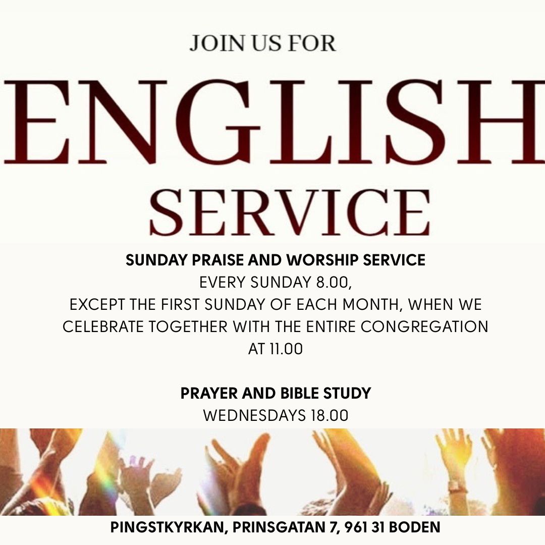 Vi vill också bjuda in dig till våra engelskspråkiga samlingar på onsdagar kl. 18.00, där vi delar gemenskap kring Guds ord, bön och gemenskap.