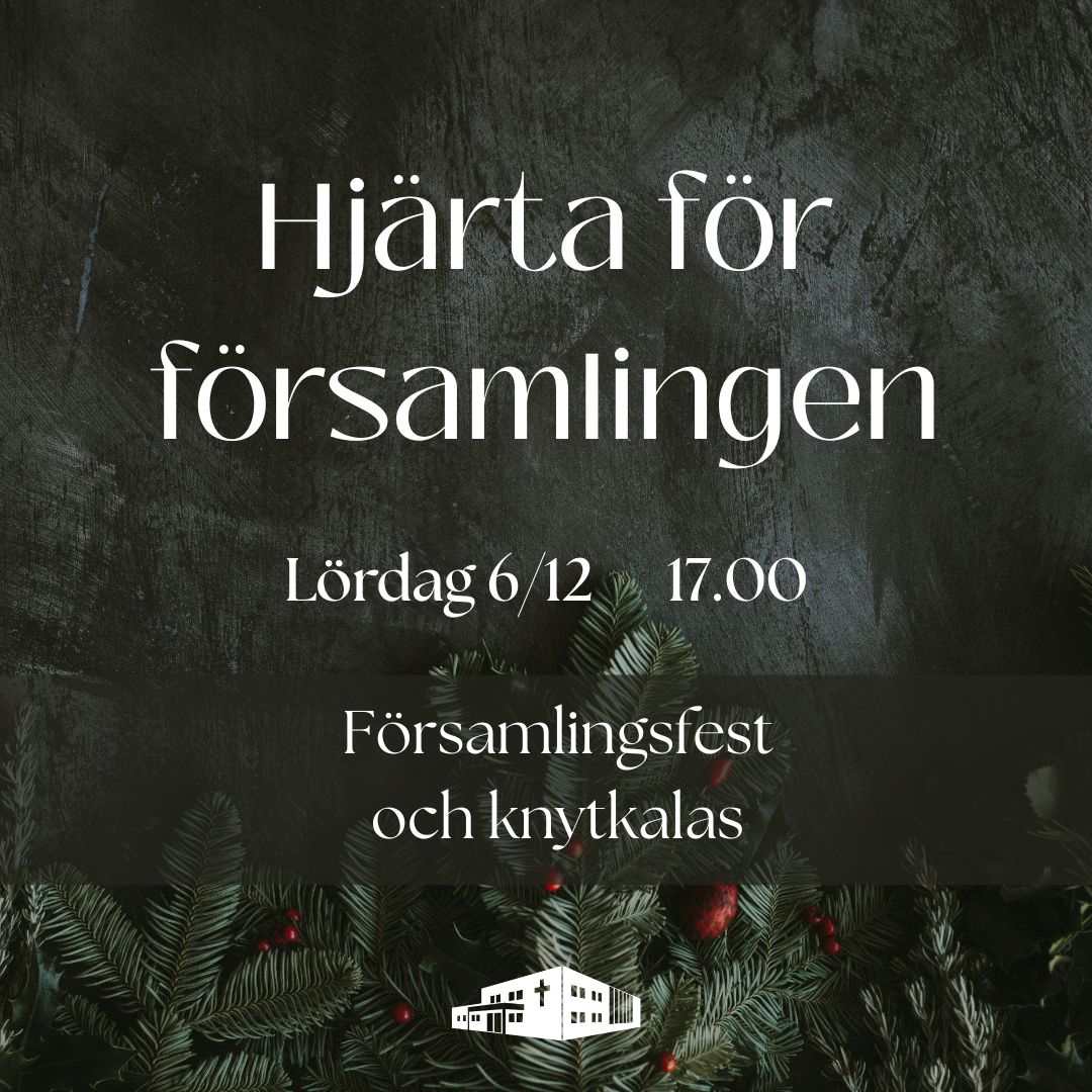 Lördag den 6/12 kl 17.00 bjuder vi in till årets sista hjärta för församling! Och vad kan väl passa bättre än en stor härlig församlingsfest? Vi kör knytkalas, så ta med dig en matpaj, en sallad, ett bakverk och/eller något annat trevligt så gör vi en riktigt härlig festmåltid tillsammans.