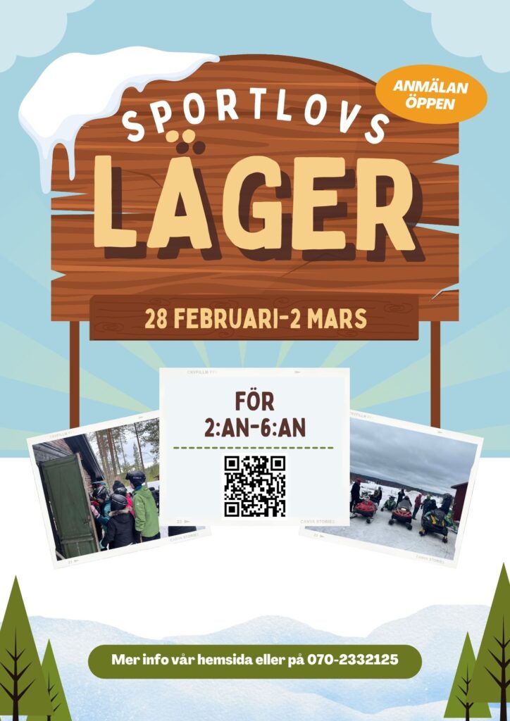 Första helgen på sportlovet 28/2-2/3 är det dags för årets sportlovsläger för barnen som går 2:an-6:an. Vi kommer att sova i kyrkan och under dagarna göra en massa annat spännande som att åka skoter, skidor, spännande samlingar och god mat.