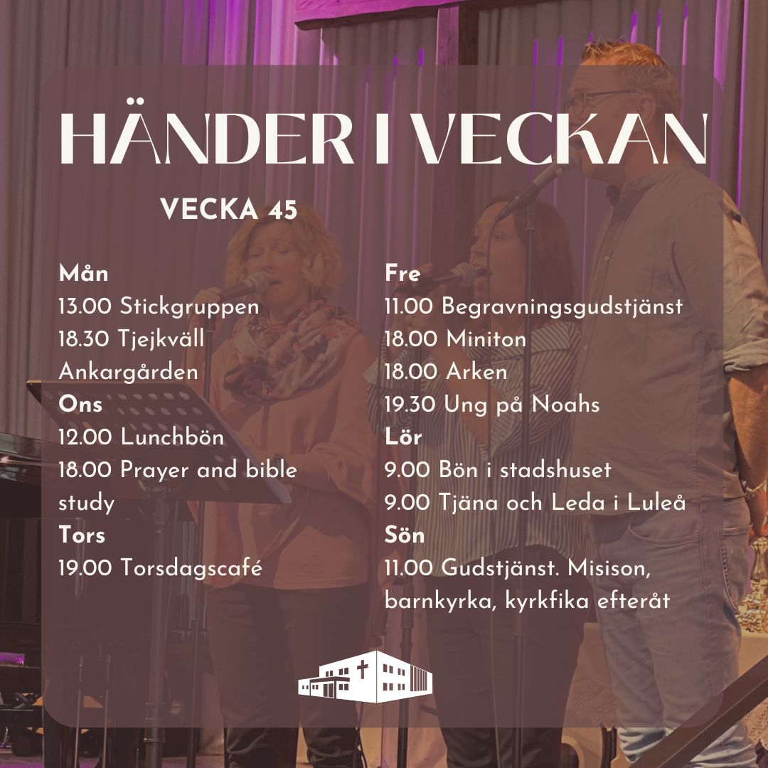 På onsdagar kl 18.00 kommer vi också att ha samlingar på engelska med fokus på bibel och bön.